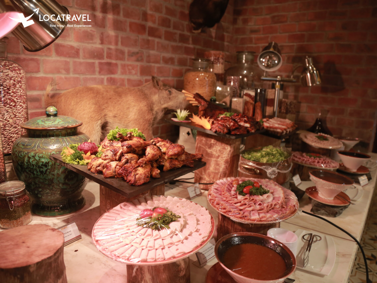 Ngoài ra còn có salad đa dạng, thịt nguội, các món chiên, đút lò, và bánh nóng Việt Nam… Mỗi món ăn đều được chăm chút kỹ lưỡng từ khâu lựa chọn nguyên liệu đến cách trình bày, mang đến trải nghiệm ẩm thực khó quên.