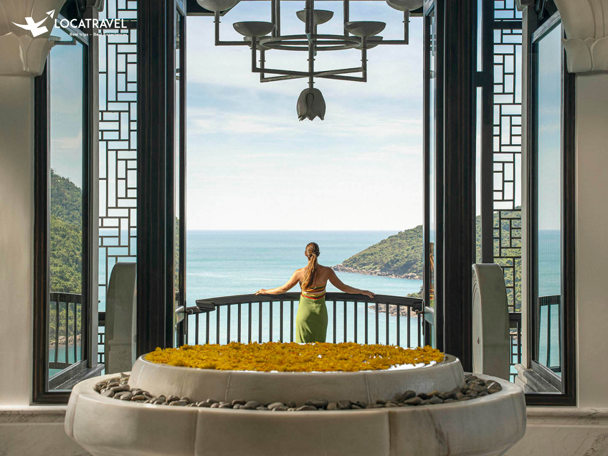 Được vinh danh là một trong những khu nghỉ dưỡng sang trọng hàng đầu châu Á bởi World Travel Awards, InterContinental Danang Sun Peninsula Resort không chỉ cuốn hút du khách bởi vẻ đẹp tựa thiên đường nhiệt đới của bán đảo Sơn Trà mà còn bởi kiến trúc độc đáo với nhiều góc "check-in" mê hoặc. Nổi bật trong số đó là khu vực ban công của sảnh chờ tầng Heaven (Thiên đường), nơi bạn có thể thả hồn vào không gian tuyệt đẹp và tận hưởng những khoảnh khắc đáng nhớ.