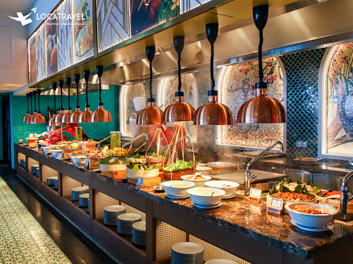 Nằm trên đỉnh núi Bà Nà ngay trong quảng trường Nhật Thực, nhà hàng Buffet Bốn Mùa là một trong những điểm đến hấp dẫn không thể bỏ qua khi bạn ghé thăm khu du lịch này. Với không gian sang trọng, rộng rãi và thiết kế hiện đại, nhà hàng mang đến một trải nghiệm ẩm thực tuyệt vời giữa thiên nhiên hùng vĩ. Mỗi góc của nhà hàng đều được chăm chút kỹ lưỡng, mang lại cảm giác thoải mái và dễ chịu cho mọi thực khách. Đặc biệt, tầm nhìn từ nhà hàng rất rộng mở, bạn có thể ngắm nhìn vẻ đẹp của Bà Nà Hills và biển mây bồng bềnh dưới chân núi. Đây là nơi lý tưởng để tận hưởng không khí trong lành và thư giãn sau một ngày khám phá. Nhà hàng mở cửa quanh năm, sẵn sàng phục vụ du khách trong mọi mùa. Dù là mùa xuân hay mùa đông, mỗi lần ghé thăm Buffet Bốn Mùa đều mang đến một cảm giác mới mẻ và thú vị.