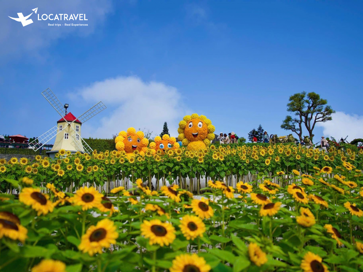 Đặc biệt, vào giữa và cuối tháng 3, nơi đây sẽ khoác lên mình sắc vàng tươi rực rỡ của hoa hướng dương, mở đầu cho lễ hội Hoa Mặt Trời lần đầu tiên được tổ chức trên đỉnh Bà Nà. Đây là dịp để du khách tận hưởng không chỉ sắc màu của hoa mà còn thưởng thức các minishow nghệ thuật đường phố đầy cuốn hút, hay khám phá không gian văn hóa Việt đặc sắc tại khu Trú Vũ Trà Quán.