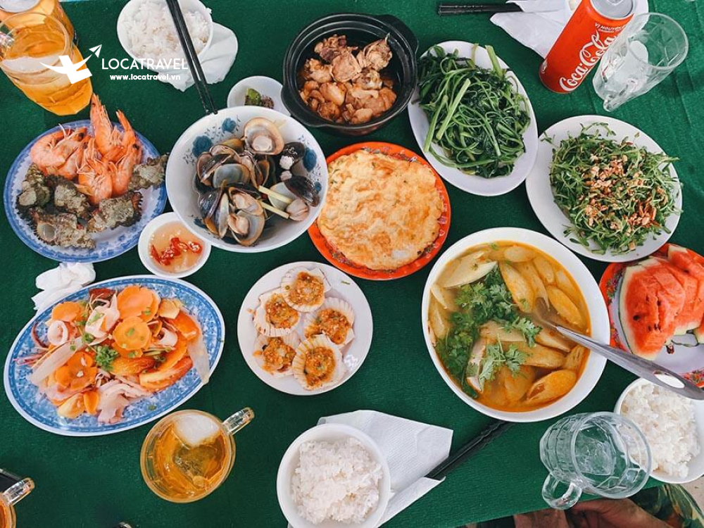 • 11h30: Du khách sẽ được quay lại Bãi Ông tắm nước ngọt và dùng cơm trưa với nhiều loại hải sản đặc sắc tại nhà hàng trên Đảo. Sau bữa trưa quý khách có thể tự do tham quan tắm biển hoặc nghỉ ngơi trên những chiếc võng tre dưới hàng dừa mát lạnh.