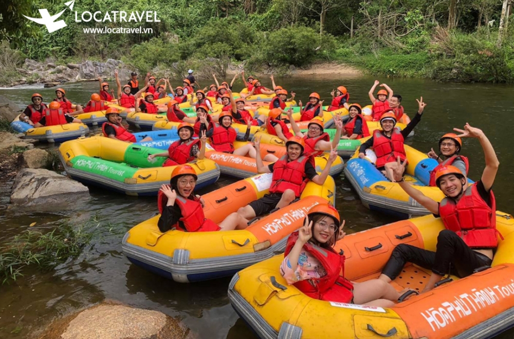 - Các dụng cụ hỗ trợ: Áo phao, mũ bảo hiểm, xuồng cao su, tủ gửi đồ, hướng dẫn và xe trung chuyển. - Tham quan, chụp hình, trượt thác bằng xuồng cao su, tắm suối tự nhiên, fish massage, đu dây qua suối. - Bảo hiểm du lịch |